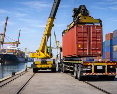 Movimentação terrestre de contêineres cheios ou vazios entre portos, terminais, armazéns e clientes finais.